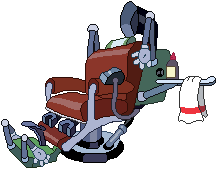 Things like the washing machine or baby carriage were. A robot butler who keeps taking his hat. 1 Function 11 Haircut 12 Shoe Shine 2 Problems 3 Mannerisms 4 Appearances Add photo When giving a haircut the barber chair.